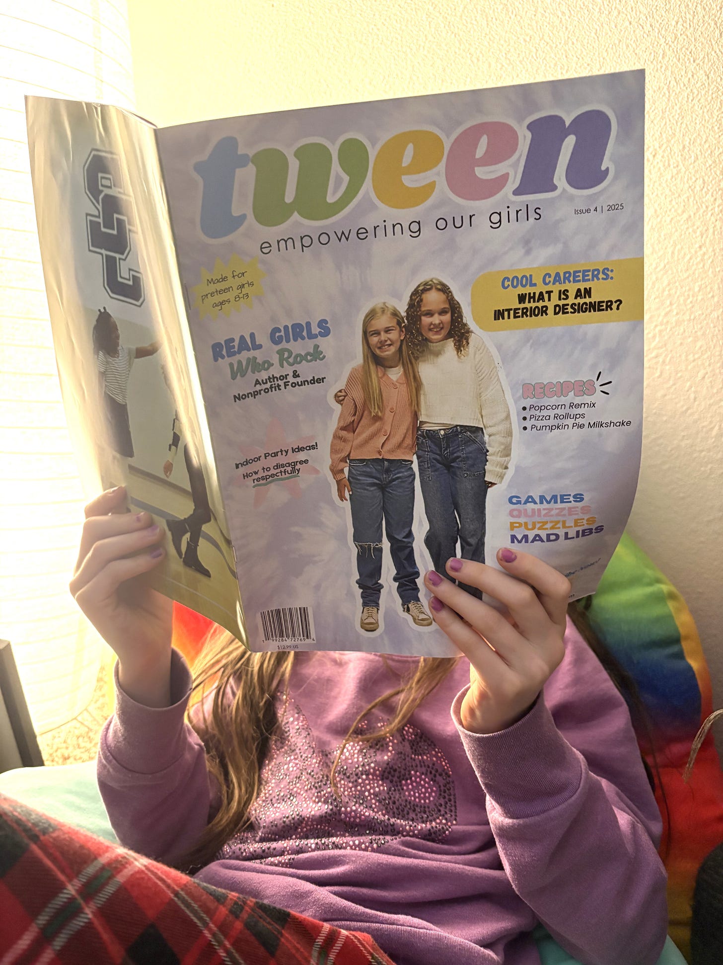 According to their website: “Fun. Interesting. Sneakily educational. Tween is a lifestyle magazine for girls ages 8 to 13 with empowering, age-appropriate content. We encourage real-life, off-line adventures and connections. We don’t focus on beauty routines, celeb culture, or impressing crushes. We celebrate the everyday girl and want to build confidence and independence.” I love that it’s about a girl being herself, being artistic, confident, and powerful. My daughter comes away from this magazine inspired, not wishing she had more makeup or different clothes or a different color of hair.